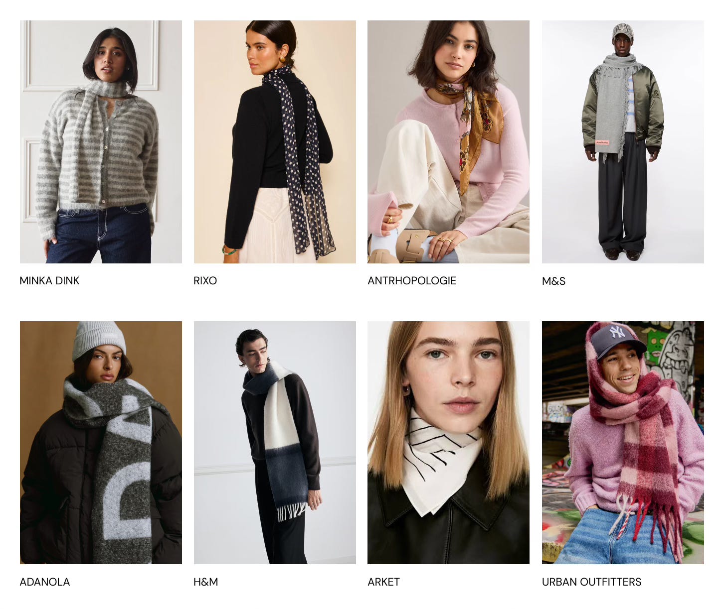 Scarves are not a revolutionary accessory for this time of year. However, FW26 is reimagining them in dramatic forms. Harunobu Murata and Alix Higgins showed sculptural scarf coats in recent collections, evolving from scarf dresses (+120.2%) and tops (+55.4%) seen across SS26. On the accessories front, all shapes, weights, and colours have been seen from brands including Vince, Maria McManus, and Albus Lumen, in both wool and satin.